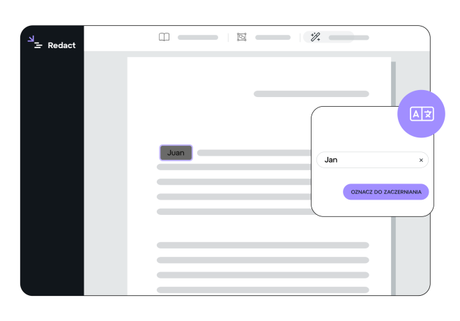 Dla urzędów mających kontakt z dokumentami w różnych językach (np. województwa przygraniczne, sądy rozpatrujące sprawy z udziałem cudzoziemców), Redact rozpoznaje dane niezależnie od języka – np. imię „Jan” jako „John”, „Jean” czy „Juan”.